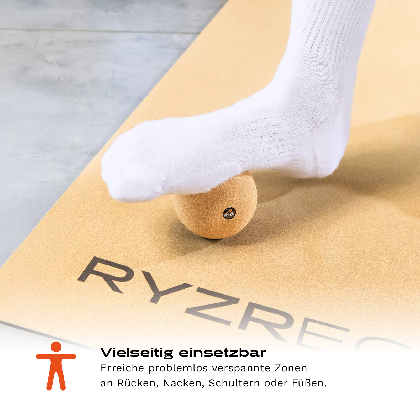 - Der RYZR Ecoball ist aus hochwertigem Kork gefertigt und bietet deinen Faszien mit gesunder Härte den optimalen Druck.