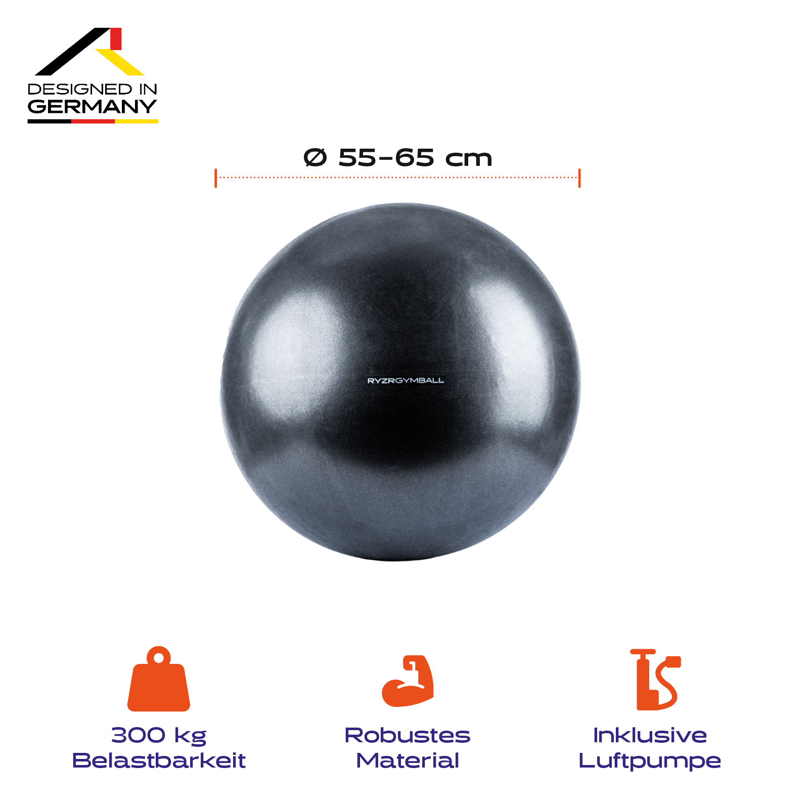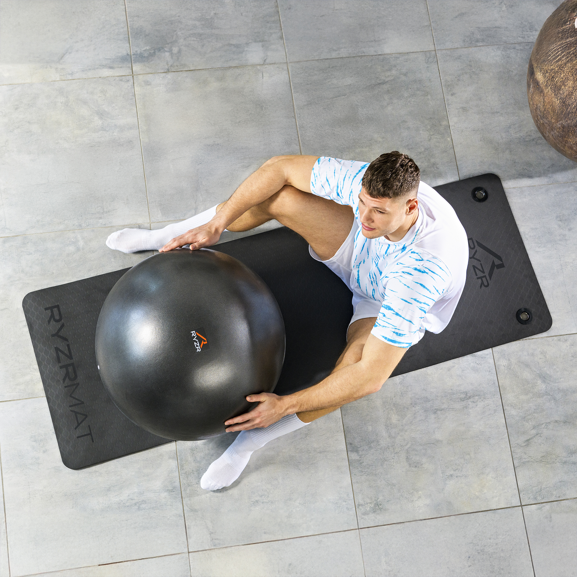 - Der RYZR Gymball besteht aus umweltfreundlichem, hypoallergenem PVC - frei von Phthalaten & Blei.