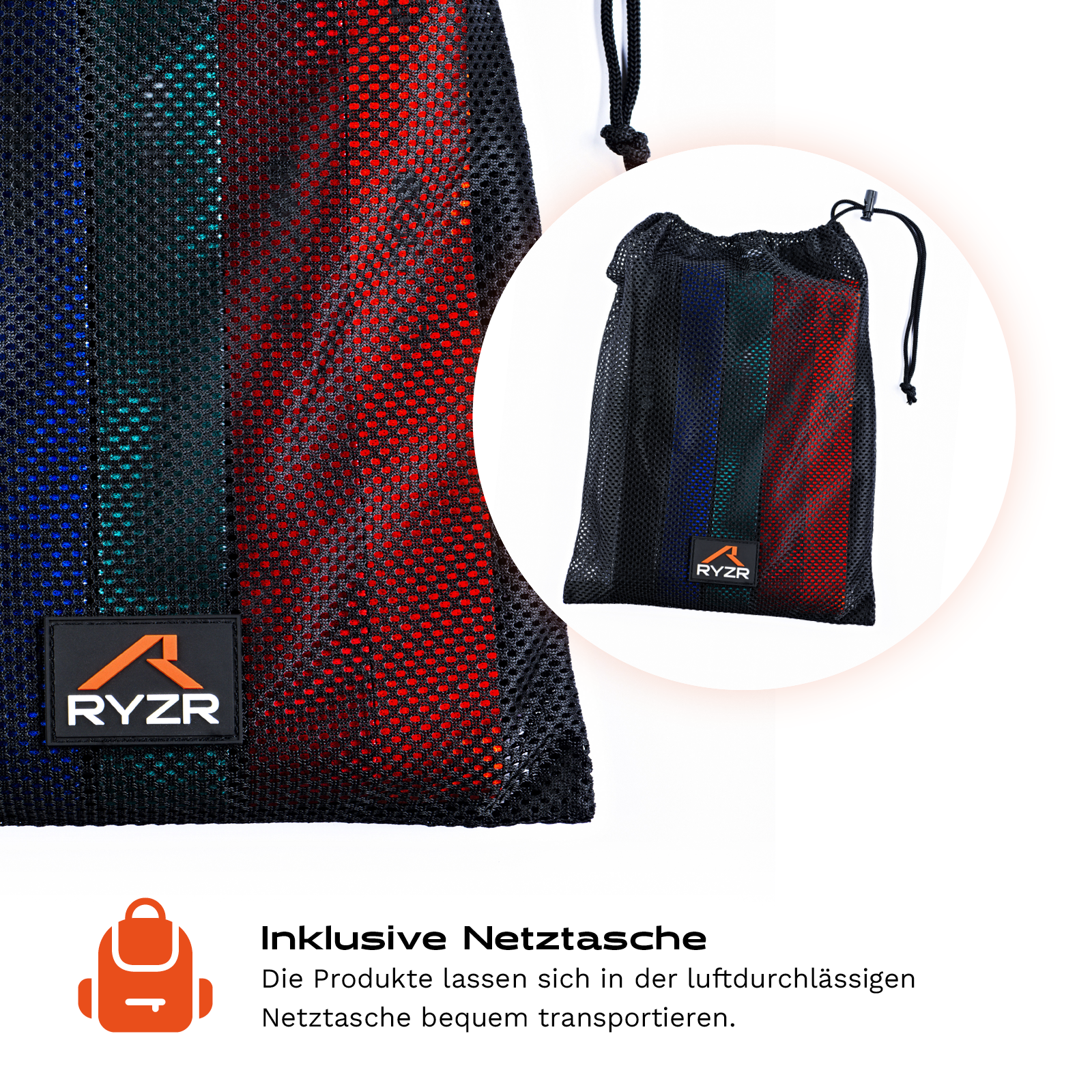 Mit der mitgelieferten Netztasche sind deine RYZR Loop immer kompakt und griffbereit verstaut. So steht deinem intensiven Workout nichts im Weg – egal, wo du gerade trainierst.