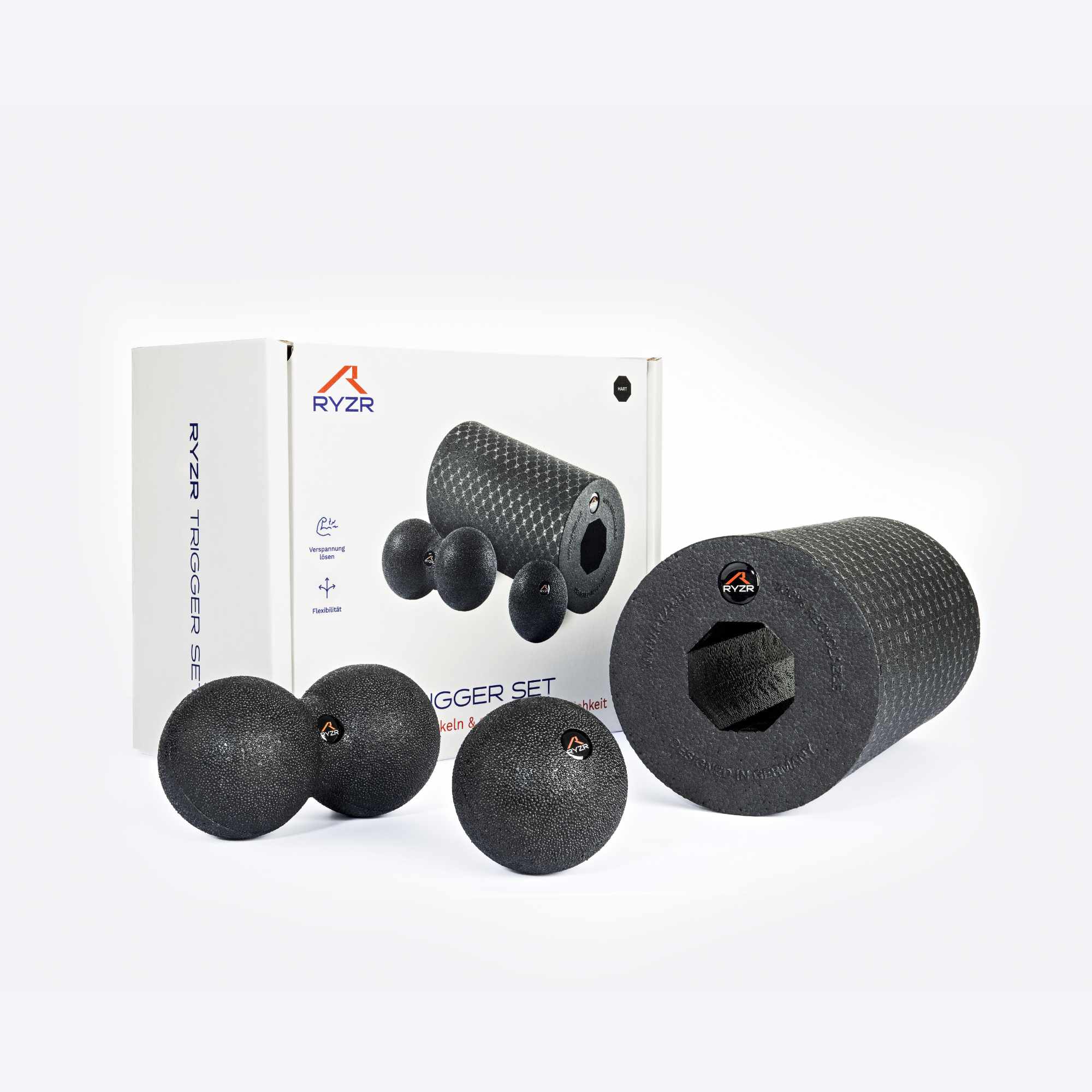 Mit dem RYZR Trigger-Set erhältst Ddu eine Ganzkörper-Faszienpflege in einem einzigen Set. Egal, ob du Dysbalancen ausgleichen, Verspannungen lösen oder gezielt Muskeln aufbauen willst – dieses Set unterstützt dich bei Triggerpunktmassagen und effektivem Faszientraining. Es verbessert deine Koordination und Beweglichkeit und sorgt für mehr Flexibilität in Alltag und Sport.